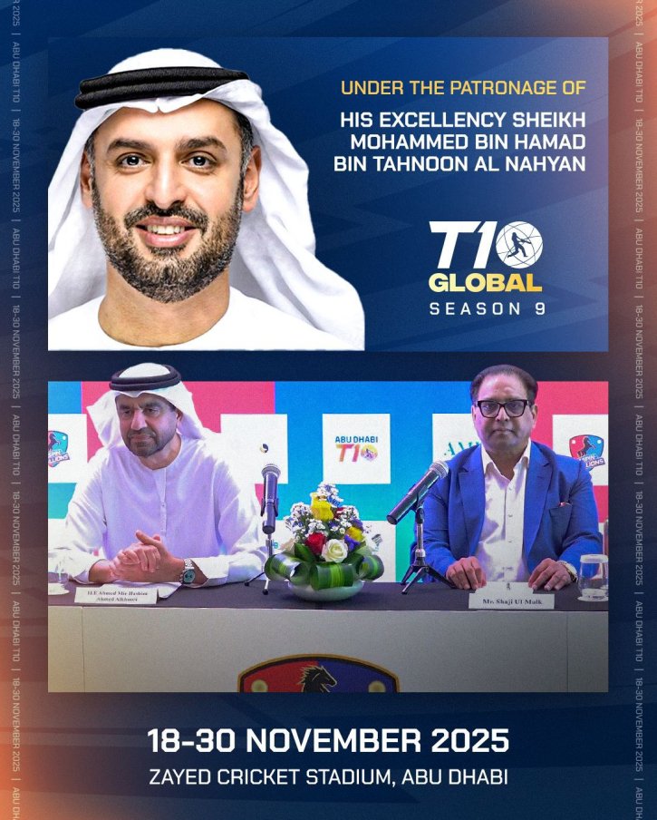 ২০২৫ সালের আবু ধাবি টি-১০ লিগ শুরু হবে ১৮ নভেম্বর এবং শেষ হবে ৩০ নভেম্বর। এবারের আসরে অংশ নিচ্ছে আটটি দল— আজমান টাইটানস, অ্যাসপিন স্ট্যালিয়নস, ডেকান গ্ল্যাডিয়েটর্স, দিল্লি বুলস, নর্দার্ন ওয়ারিয়র্স, কোয়েটা ক্যাভ্যালরি, রয়্যাল চ্যাম্পস এবং ভিস্তা রাইডার্স।